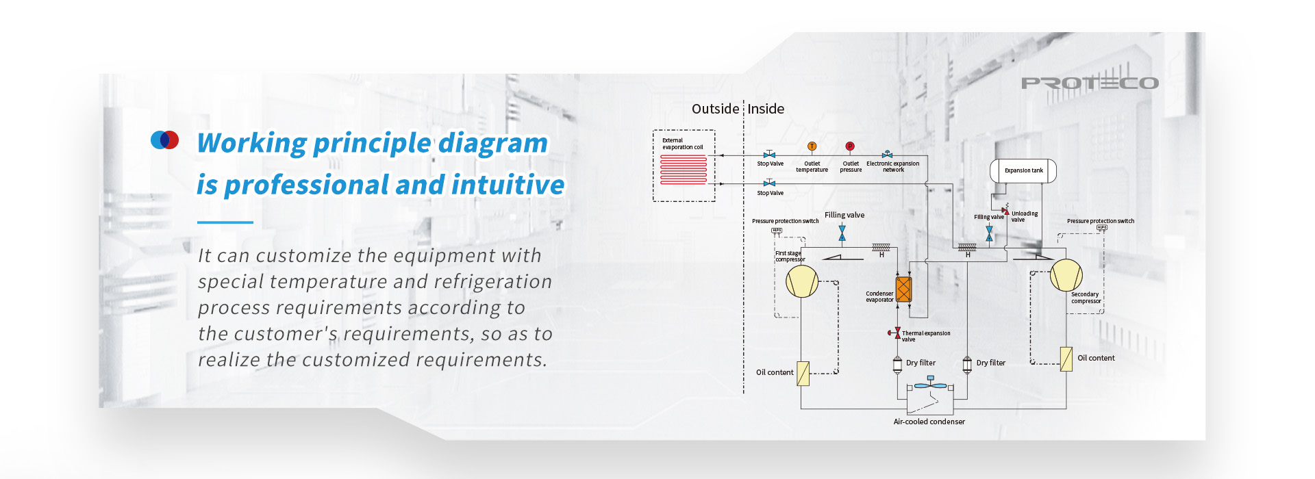 Direct cooling refrigeration machine is a device that directly outputs and evaporates refrigerant from a refrigeration system into a heat exchanger or control chamber element that requires temperature control, thereby rapidly cooling and maintaining a constant temperature of the target equipment