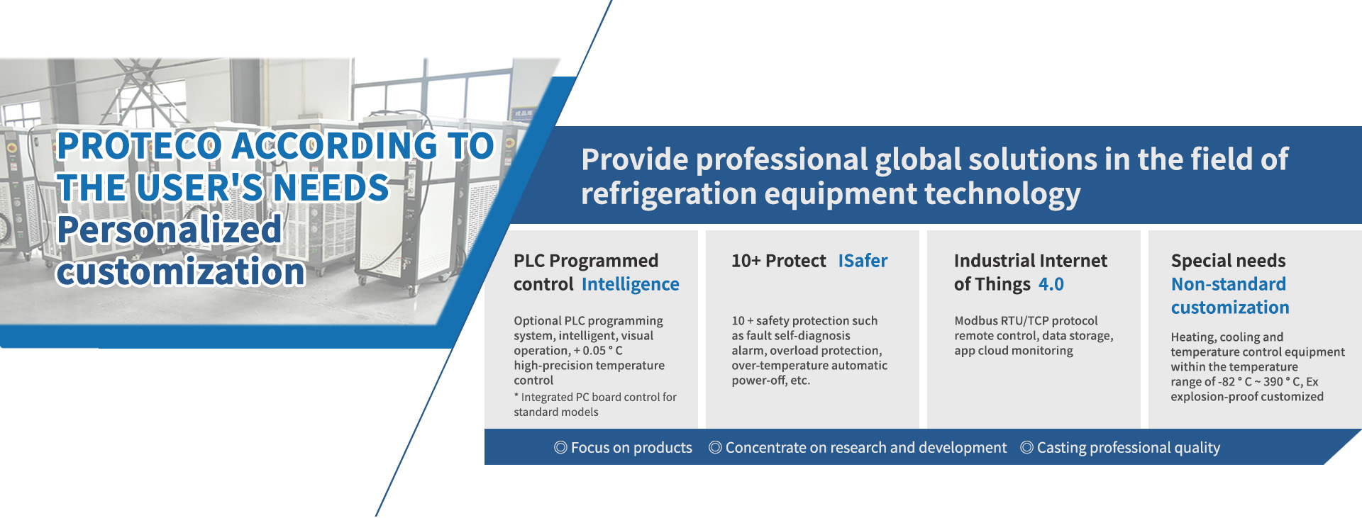 The refrigeration and heating equipment is commonly referred to as the TCU system in the chemical industry. This mainly utilizes existing energy sources (steam, circulating water, and chilled water), integrating primary energy into a single flow system or secondary circuit for accurate temperature control of process equipment. The medium of the integrated cold and hot temperature control machine continuously conducts heat to the jacket of the reaction kettle, instead of directly controlling the temperature of the reaction kettle through steam, cooling water, and ultra-low temperature medium. The refrigeration and heating equipment automatically adjusts the temperature required for the overall reaction through big data calculation.