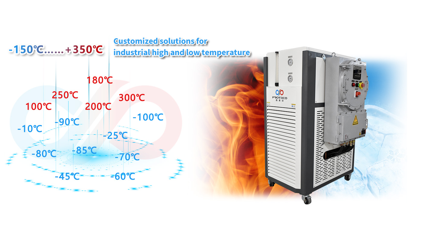 The PLS series industrial chillers are mainly composed of refrigeration system, circulation system, control system, box, etc. The refrigeration system adopts steam compression refrigeration. The circulation system consists of a circulation pump, a cold storage container, an exhaust valve, a one-way valve, a thermal resistor, pipelines, etc. The control system adopts PID control technology, high-definition touch screen display, and is equipped with multiple protection functions to ensure the safe operation of the equipment. By cooling and heating the unit itself, the heat carrying fluid is transported to the outside world to meet the requirements of the process conditions.