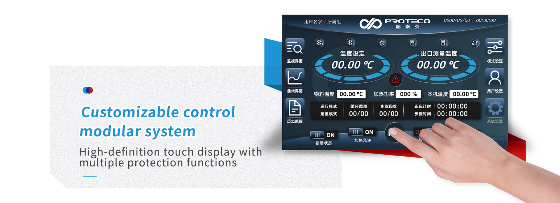 The reaction kettle temperature control system can be used to control the temperature of chemical synthesis reactions. By precise temperature control, the reaction rate, selectivity, and product purity can be adjusted to improve the efficiency and yield of the synthesis reaction. Putek's reaction kettle temperature control system is suitable for dynamic constant temperature control of cold and heat sources such as jacket reaction kettles, microchannel reactors, reaction devices, combined chemistry, as well as low-temperature distillation, distillation, extraction and other equipment in the pharmaceutical industry.